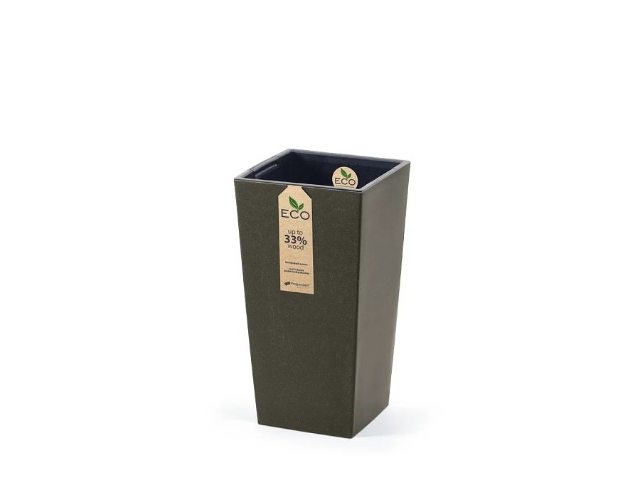 Vysoký kvetináč je vyrobený z plastu v kombinácii s prírodným drevom. To je získavané za pomoci pokročilej technológie recyklácie. Počas tohto procesu je recyklovaný prírodný odpad získaný pri spracovaní dreva. Ten je potom využitý ako unikátny a originálny komponent pre výrobu kolekcie ECO Wood. Kvetináč Urbi Square ECO Wood je z 33 % vyrobený z dreva.