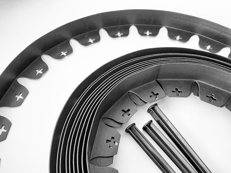 Neviditeľné obrubníky v návine sa vyrábajú z odolného plastu, ktorý odoláva UV žiareniu, vetru aj mrazu. Plastové obrubníky nevylučujú žiadne škodlivé látky, ktoré by poškodily zdravie rastlín. Naviac sú 100% recyklovateľné a nezaťažujú životné prostredie.