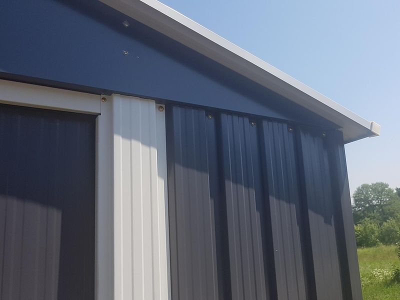 Kvalitný materiál s povrchovou úpravou – elektrolyticky pozinkovaný plech s žiarovo nanesenú farbou. Sedlová strecha, čelné posuvné dvere. Možnosť uzamknutia (zámok nie je obsahom dodávky).