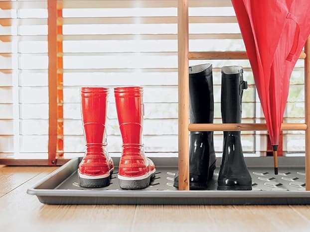 Na plastovú podložku môžete tiež uložiť vonkajšiu obuv, aby ste si po príchode domov nezašpinili podlahové parkety, dlaždice alebo vinylovú podlahu.