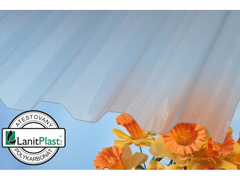 Trapézové dosky z polykarbonátu o sile 0,8 mm sú úplne hladké, priehľadné, bez povrchovej krupičky. Polykarbonátové dosky dodávame v čírej alebo v priehľadnej dymovo hnedej farbe.
