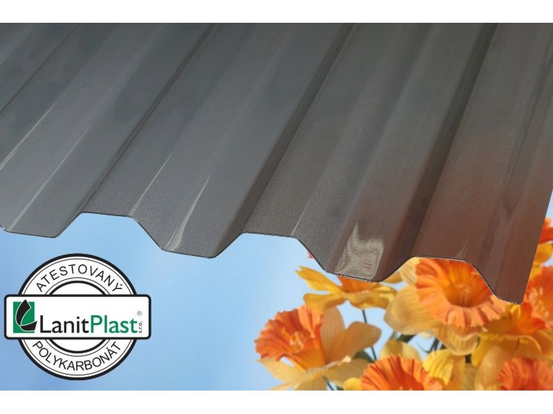 Trapézové dosky z polykarbonátu o sile 0,8 mm sú úplne hladké, priehľadné, bez povrchovej krupičky. Polykarbonátové dosky dodávame v čírej alebo v priehľadnej dymovo hnedej farbe.
