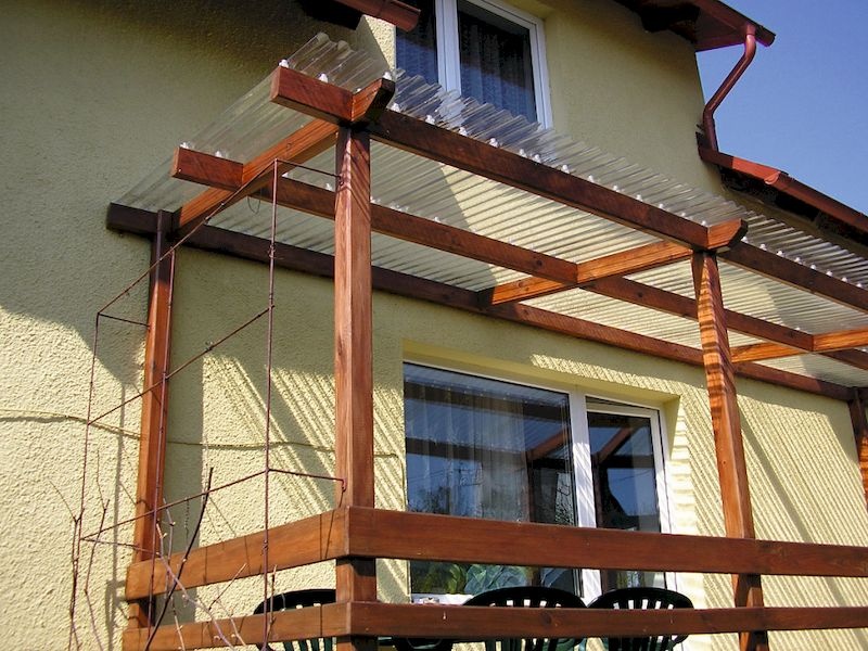Pre zastrešenie pergoly trapézovým polykarbonátom, je vhodné zvoliť ako základ drevenú konštrukciu. Horná strana základnej laty by mala byť natretá na bielo – alebo použite metalizovanú pásku Guttaband AL, aby ste zabránili nadmernému prehrievaniu konštrukcie. Ak použijete ochranné prostriedky na drevo, ošetrené konštrukčné časti sa musia nechať riadne vyschnúť, aby sa zabránilo vzniku farebných škvŕn na spodnej strane dosiek.
