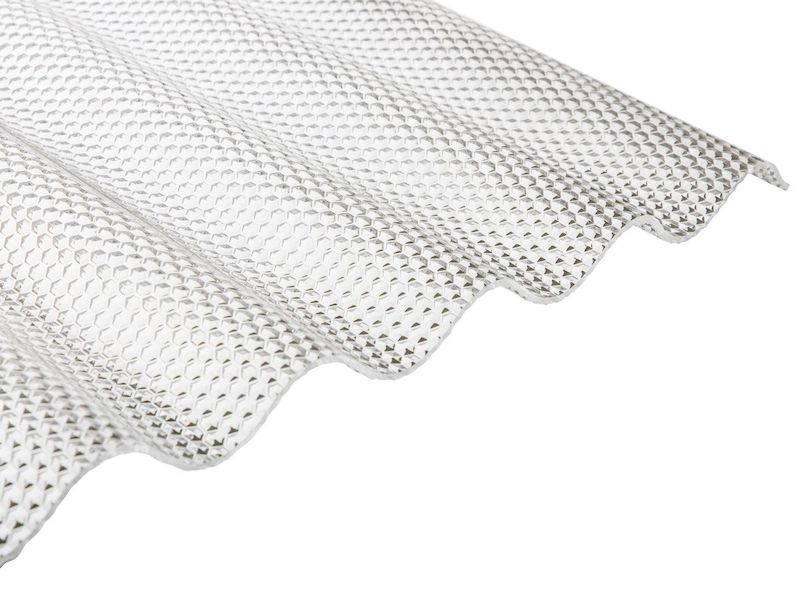 Vlnitá strešná krytina Guttagliss WABE má hrúbku 2,6 mm a špeciálnu pyramídovú štruktúru na spodnej strane dosky. Táto konštrukcia zabezpečuje vysokú priepustnosť svetla a optimalizuje slnečné žiarenie rovnomerným rozložením slnečných lúčov po celej šírke strešnej plochy.