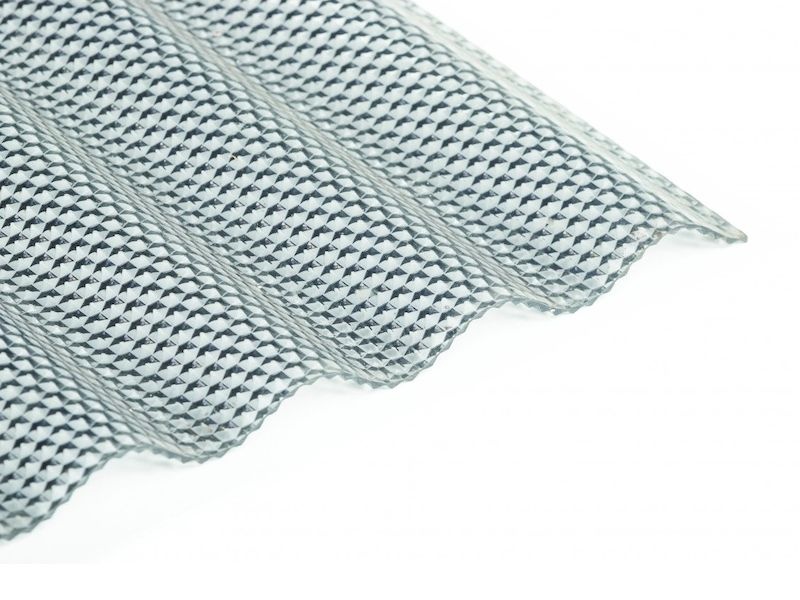 Vlnitá strešná krytina Guttagliss WABE má hrúbku 2,6 mm a špeciálnu pyramídovú štruktúru na spodnej strane dosky. Táto konštrukcia zabezpečuje vysokú priepustnosť svetla a optimalizuje slnečné žiarenie rovnomerným rozložením slnečných lúčov po celej šírke strešnej plochy.
