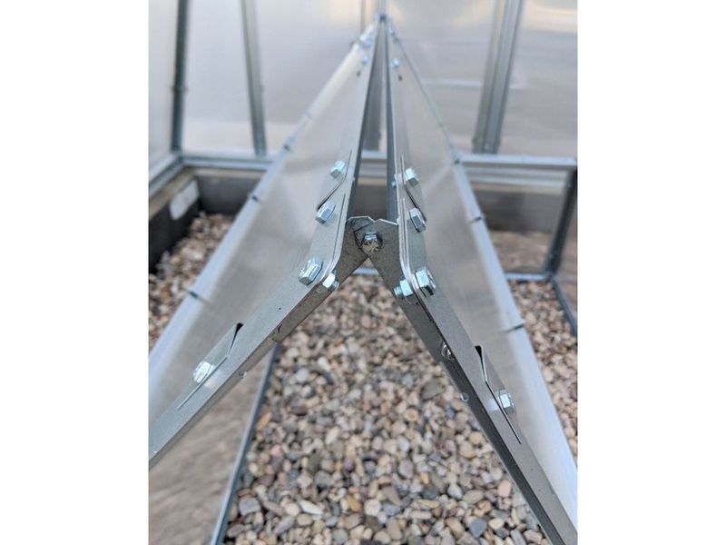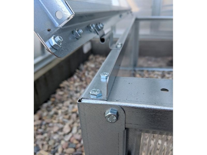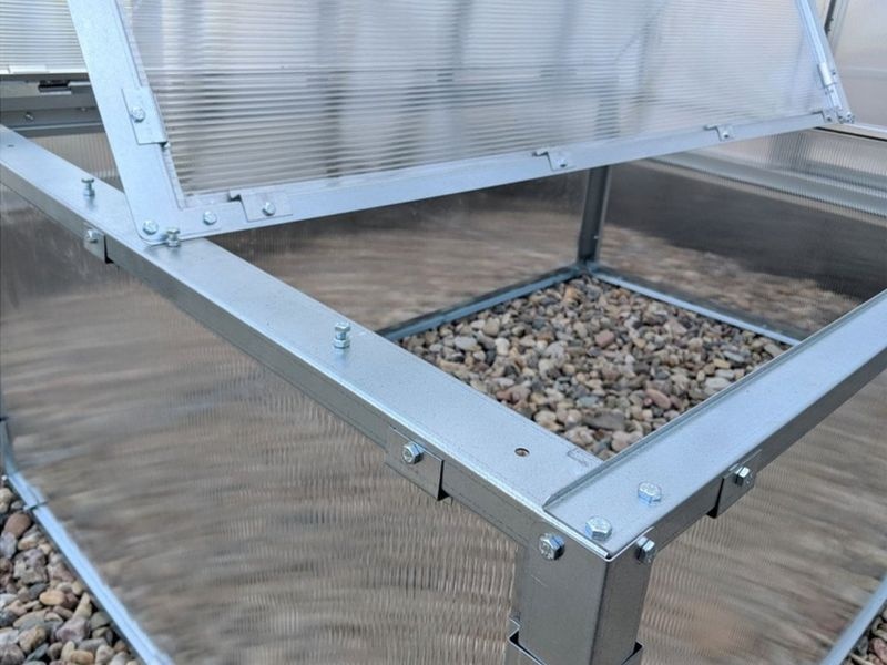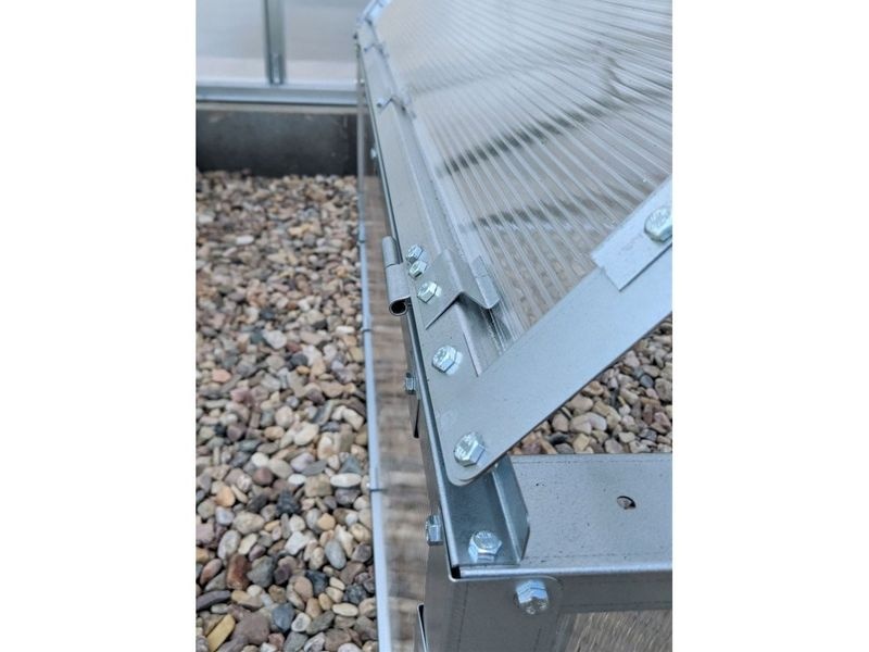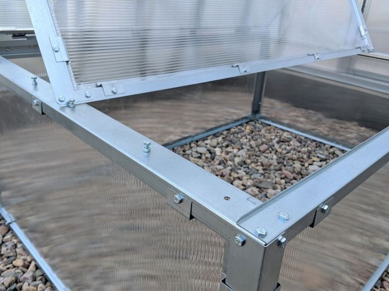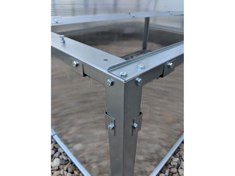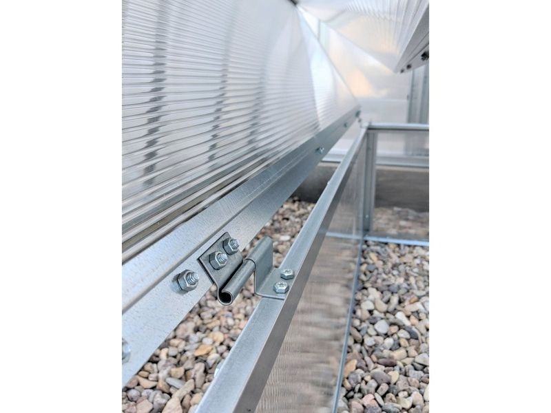 Celá konštrukcia skleníka je vyrobená z pevných pozinkovaných profilov s hrúbkou 1 mm. Výplň je vyrobená z polykarbonátu s hrúbkou 4 mm, ktorý je chránený proti UV žiareniu. Okrem toho má aj zvýšenú ochranu proti krupobitiu. Vďaka tomu sú vaše rastliny chránené pred zničením vplyvom prírodných živlov.
