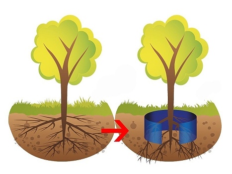 Najvhodnejšia a najefektívnejšia je kruhová inštalácia záhradnej fólie, kedy je membrána omotaná v zemine okolo stromu. Bariéra ale nesmie byť aplikovaná príliš blízko rastliny, pretože málo priestoru pre rast koreňov vedie ku zníženiu jej stability.