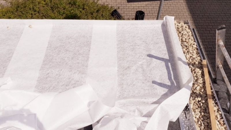 Inštaláciu sme teda vykonávali postupne tak, že sme natiahli jeden pás fólie, prikryli ho separačnou geotextíliou a na ňu umiestnili a rozhrnuli substrát.