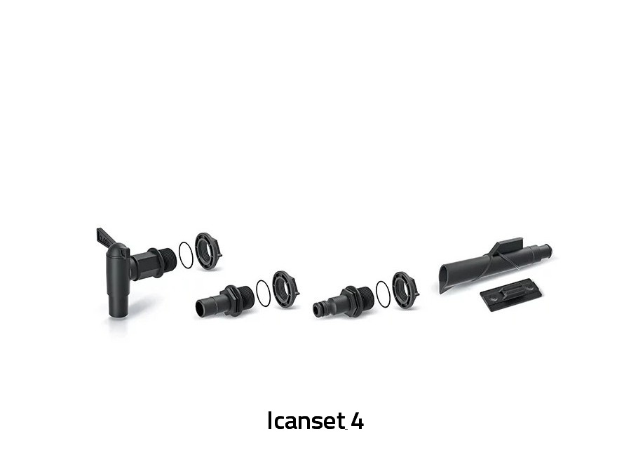 Sada uľahčuje odvod zachytenej dažďovej vody v sude. Sada sa skladá z 13 dielov: vykružovadla, prípojky, kohútiku, rýchlospojky, záhradnej transparentnej hadice, koncovky hadice, držiaku koncovky, 3 redukcií, spojovacej hadice, vonkajšieho filtru, lapača vody. Sada je doplnená o vonkajší filter hrubých nečistôt dažďovej vody. Univerzálna sada.
