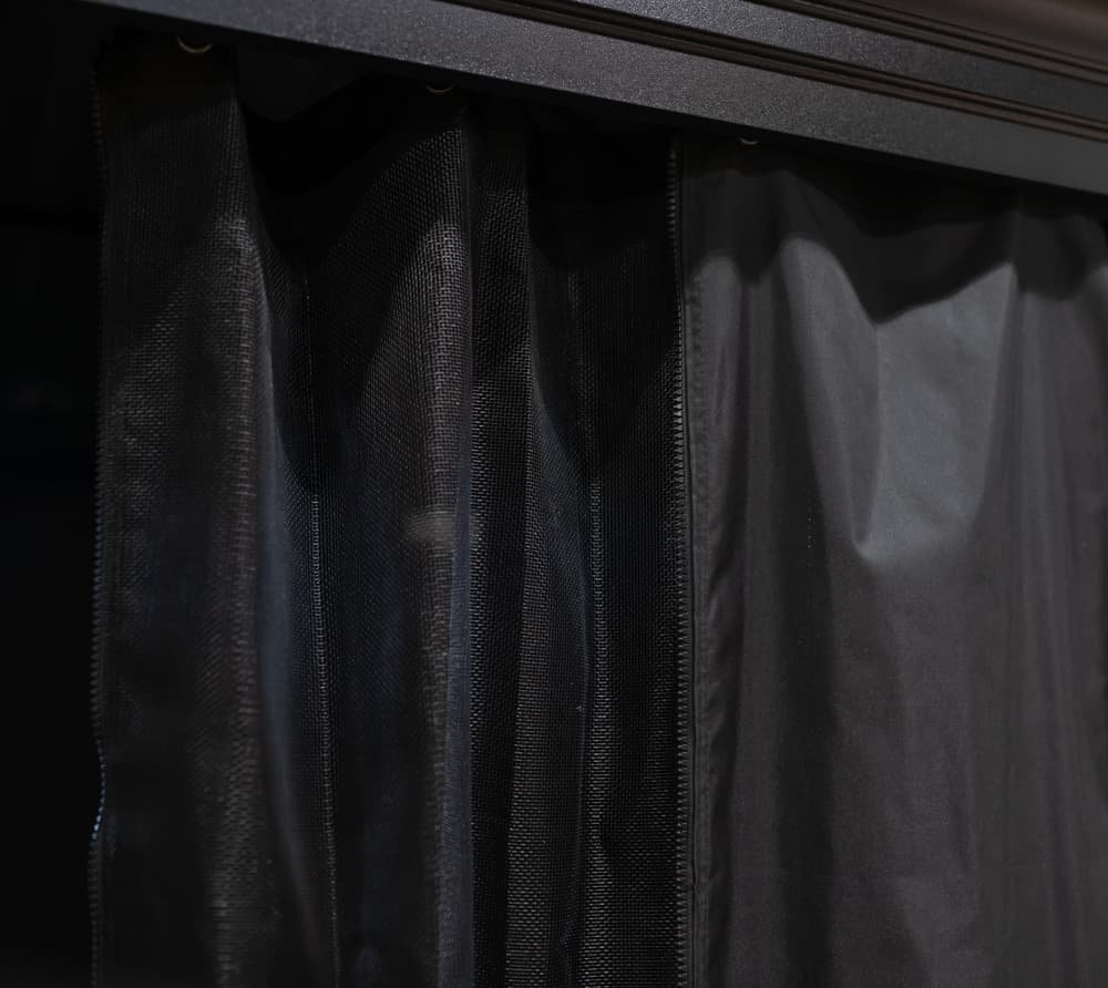 Sada závesov k altánku Marsala 1220, ktoré vám v lete poskytnú tieň aj súkromie. Farba: čierna