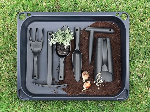 Súprava záhradného náradia obsahuje základné nástroje na presádzanie rastlín. Vďaka svojej veľkosti je náradie vhodné aj na pestovanie rastlín v domácnosti. Súprava sa dodáva zabalená v závesnom vrecku. Plastové vrecko s náradím možno pohodlne zavesiť na háčik.