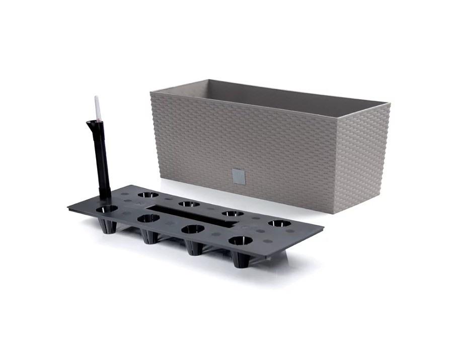 Samozavlažovacie truhlíky sú vyrobené z odolného plastu, ktorý vierohodne imituje ratanový výplet. Materiál je odolný voči UV žiareniu, dažďu a vetru, takže kvetinové boxy na balkóne neohrozí slnečné žiarenie ani nepriaznivé počasie.