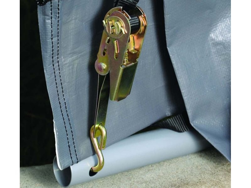 Konštrukcia plachty je zabezpečená upínacími západkami a vstupný otvor (š. 200, 160 × v. 180 cm) je vybavený dvoma zipsami a gumovými uzávermi na jednoduché otváranie/zatváranie. Súčasťou balenia je kompletná kotviaca súprava vrátane štyroch kotiev s dĺžkou 38 cm. Tiež 8 upevňovacích popruhov na upevnenie plachty k rámu vo vetre a v poveternostných podmienkach. Vystužená zadná stena poskytuje dodatočnú stabilitu.