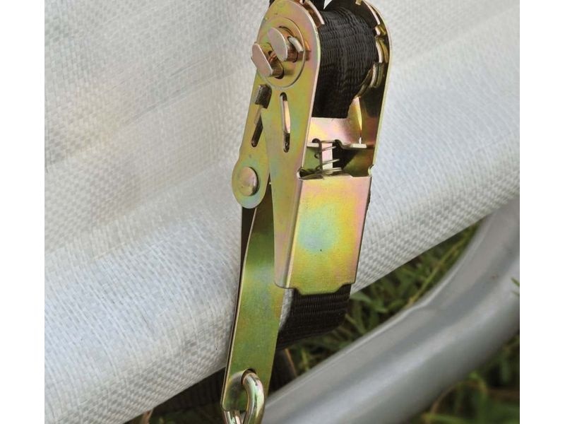 Konštrukcia plachty je zabezpečená upínacími západkami a vstupný otvor (š. 260 × v. 210 cm) je vybavený dvoma zipsami a gumovými uzávermi na jednoduché otváranie/zatváranie. Súčasťou balenia je kompletná kotviaca súprava vrátane štyroch kotiev s dĺžkou 38 cm. Tiež 8 upevňovacích popruhov na upevnenie plachty k rámu vo vetre a v poveternostných podmienkach.