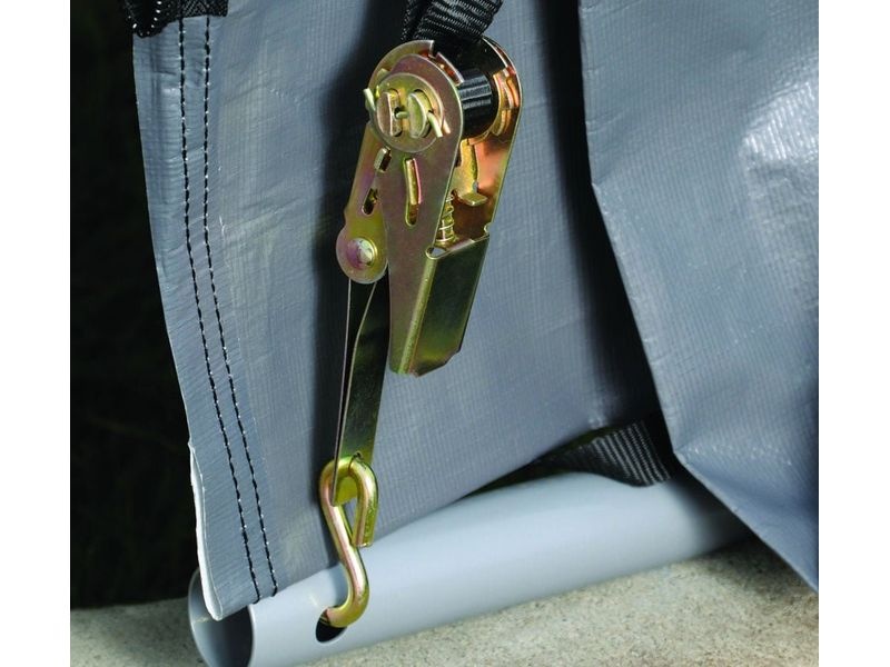 Konštrukcia plachty je zabezpečená upínacími západkami a vstupný otvor (š. 200, 160 × v. 180 cm) je vybavený dvoma zipsami a gumovými uzávermi na jednoduché otváranie/zatváranie. Súčasťou balenia je kompletná kotviaca súprava vrátane štyroch kotiev s dĺžkou 38 cm. Tiež 8 upevňovacích popruhov na upevnenie plachty k rámu vo vetre a v poveternostných podmienkach. Vystužená zadná stena poskytuje dodatočnú stabilitu.