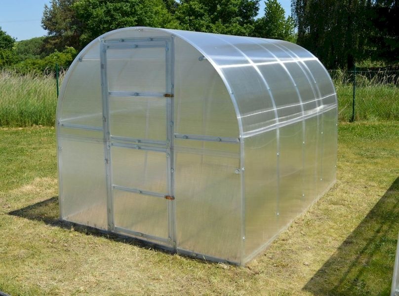 Malé rozstupy oblúkov zaručujú vysokú nosnosť celej konštrukcie skleníka. Predná a zadná strana skleníka má zabudované dvojité dvere, takže skleníkom možno prechádzať z oboch strán. Ak otvoríte hornú časť dverí na oboch koncoch skleníka, zabezpečíte tým pohodlné vetranie celého skleníka bez toho, aby doň mali prístup deti alebo domáce zvieratá.