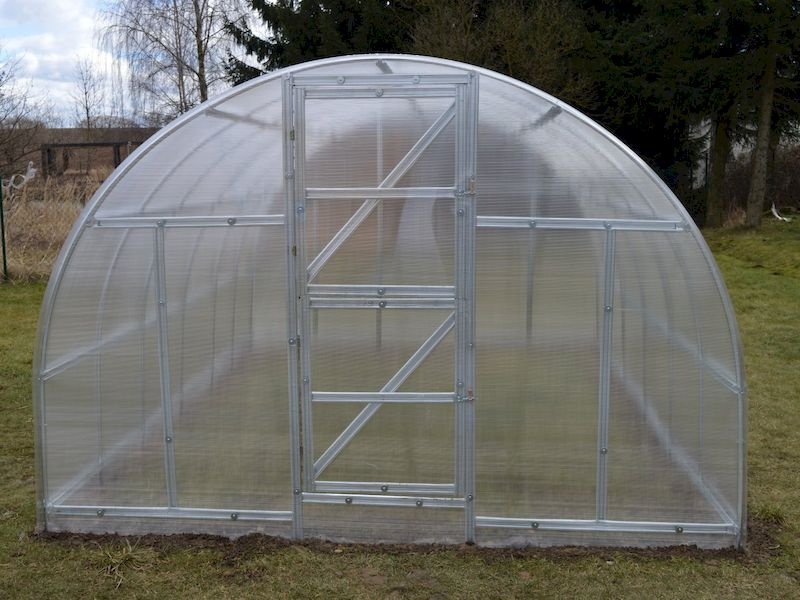 Malé rozstupy oblúkov zaručujú vysokú nosnosť celej konštrukcie skleníka. Predná a zadná strana skleníka má zabudované dvojité dvere, takže skleníkom možno prechádzať z oboch strán. Ak otvoríte hornú časť dverí na oboch koncoch skleníka, zabezpečíte tým pohodlné vetranie celého skleníka bez toho, aby doň mali prístup deti alebo domáce zvieratá.