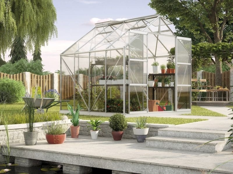 presklenie je z kaleného číreho skla o hrúbke 3 mm. Číre sklo zaisťuje výbornú svetelnú priepustnosť, takže do skleníka je krásne vidieť zo všetkých strán a môžete sa kochať farbami pestovaných rastlín.