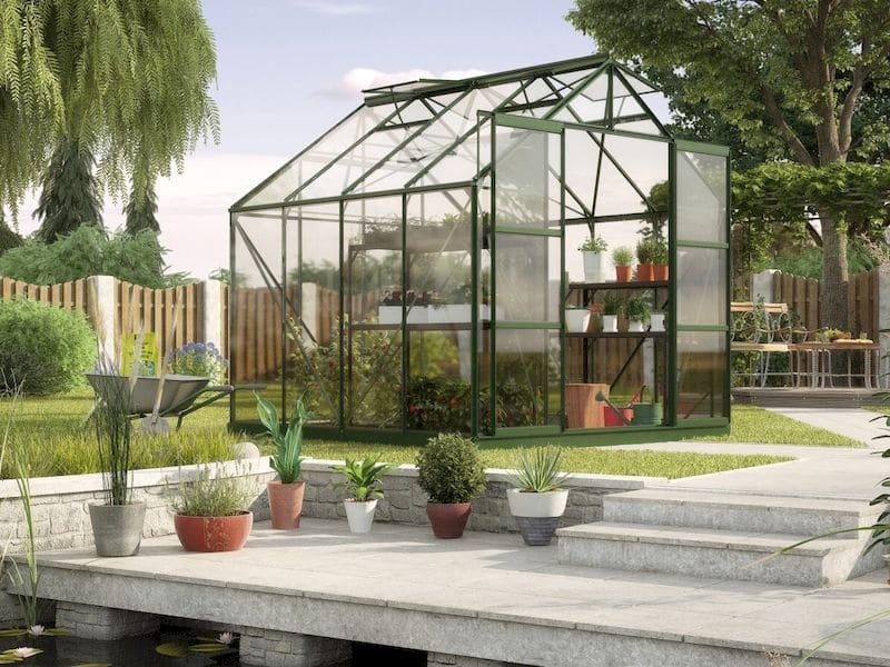 Veľký hliníkový skleník z číreho kaleného skla o hrúbke 3 mm. Konštrukcia je vyrobená z odolných hliníkových profilov. Číre sklo zaisťuje výbornú svetelnú priepustnosť. Do skleníka je vidieť zo všetkých strán. Súčasťou balenia sú 2 strešné okná. Záhradný skleník pochádza od renomovaného britského výrobcu. Rozmery skleníka: 257 × 258 cm. Zastavaná plocha: 6,63 m².