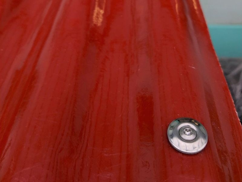 Počet je približne 12 kusov na 1 m2. Skrutky sú pripevnené v každom treťom vrchole. V prípade, že kladiete role na mieste s nepriaznivými poveternostnými podmienkami, odporúčame upevniť role zo sklených vlákien v každom druhom vrchole. V presahoch pripevnite sklolaminátové role na každý vrchole. Neodporúčame spájať role lepidlom alebo skrutkami. Iba sa navzájom prekrývajú.