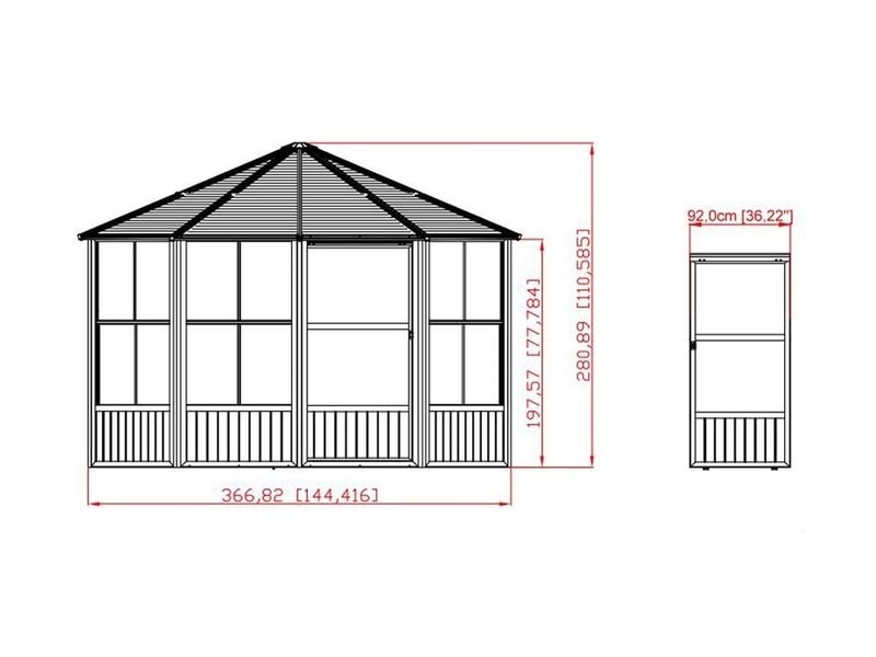 Strecha je vyrobená z kvalitnej pozinkovanej ocele. Zaručuje mimoriadnu stabilitu a spoľahlivo odoláva poveternostným vplyvom, ako je dážď, sneh alebo slnko. Altán tak môžete bez obáv ponechať vonku po celý rok.