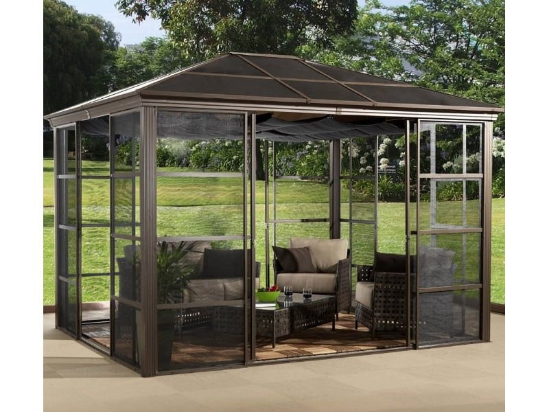 Hliníkový altánok vám na vašej záhrade vytvorí príjemné a útulné miesto na oddych a ozvláštni ju svojím elegantným vzhľadom. Je vybavený moskytiérou, vzdušnou strechou a dvojitými posuvnými dverami.
