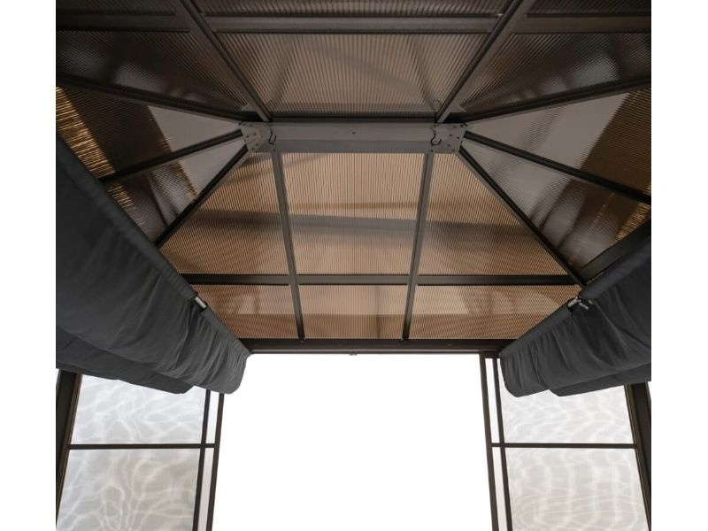 Špeciálny galvanický povlak chráni konštrukciu aj pred UV žiarením. Dvojité posuvné dvere po otvorení pomáhajú vytvoriť vzdušnú atmosféru a sú na všetkých štyroch stranách altánku.