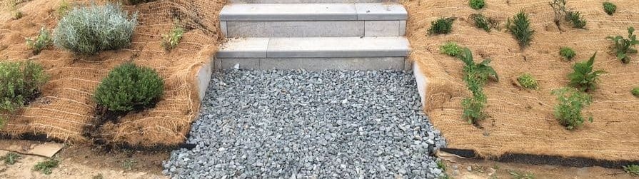Máme ílovitú pôdu, čo je problém hlavne pri dažďoch. A keďže práve napršalo a v záhrade už prebiehajú stavebné práce, chceli sme splavovanie pôdy vyriešiť čo najskôr. O tom, že je možné použiť protierózne rohože, sme vedeli zo skupiny Žijte ve své zahradě (kurz Ferdinanda Lefflera).