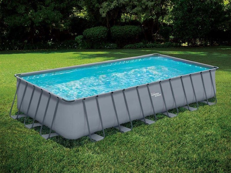Rám bazéna sa skladá z trubiek z pokovovanej ocele, ktoré zaručujú vysokú pevnosť a stabilitu. Vonkajší povrch v elegantnej sivej farbe sa hodí do každej záhrady.