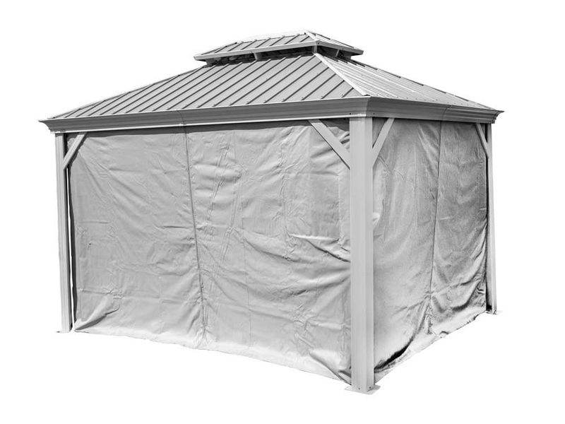 Súprava závesov je určená pre celý altánok. Pokrýva všetky strany, pričom závesy sú pripevnené na inú koľajnicu než siete proti hmyzu pomocou dvojitého koľajnicového systému. Tým zaisťujú jednoduchšiu manupuláciu.