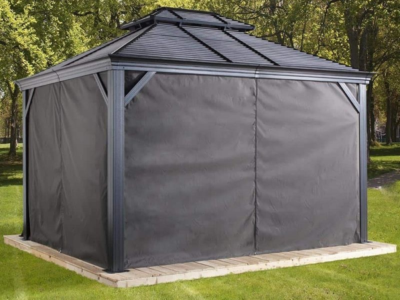 Súprava závesov je určená pre celý altánok. Pokrýva všetky strany, pričom závesy sú pripevnené na inú koľajnicu než siete proti hmyzu pomocou dvojitého koľajnicového systému. Tým zaisťujú jednoduchšiu manupuláciu.