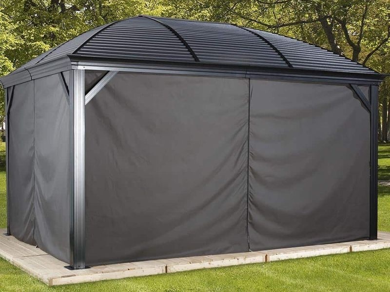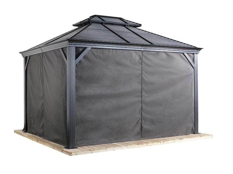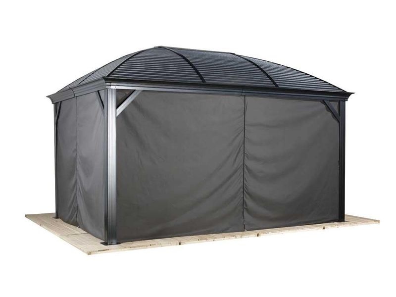 Súprava závesov je určená pre celý altánok. Pokrýva všetky strany, pričom závesy sú pripevnené na inú koľajnicu než siete proti hmyzu pomocou dvojitého koľajnicového systému. Tým zaisťujú jednoduchšiu manupuláciu.
