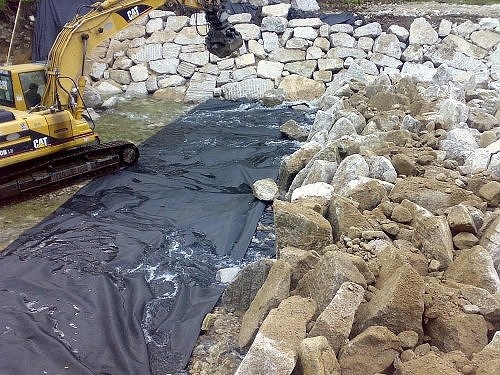 NevhodnáGeotextílie sú vodo priepustné. Na izoláciu sa používajú nepriepustné fólie. |