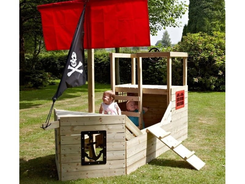 Rovnako ako v skutočnom pirátskom živote je prístup na loď možný pomocou drevenej dosky. Pirátska loď bude ozdobou vašej záhrady a stane sa miestom pre množstvo nápaditých rolí a hodín vzrušujúcej hry.