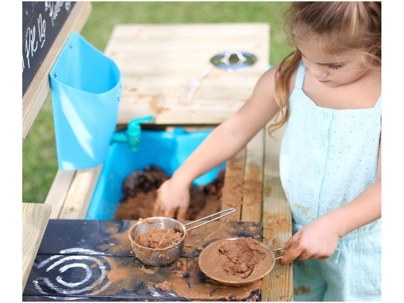 Vybavená kuchyňka Marmot od TP Toys zahrnuje odnímatelný funkční dřez, autentický vodní cyklus, čtyři namalované plotýnky a vysoce kvalitní nádobí z nerezové oceli. Pro naplnění dřezu stačí otevřít zátku ve dřezu a naplnit příslušné množství vody. Napuštěná voda se načerpá pomocí tlačítka pumpy a poté vyteče z kohoutku. Je ideální volbou pro děti, které chtějí zažít skutečnou kuchařskou zábavu.