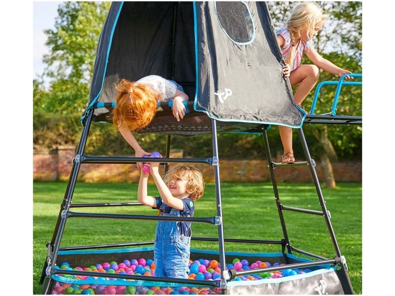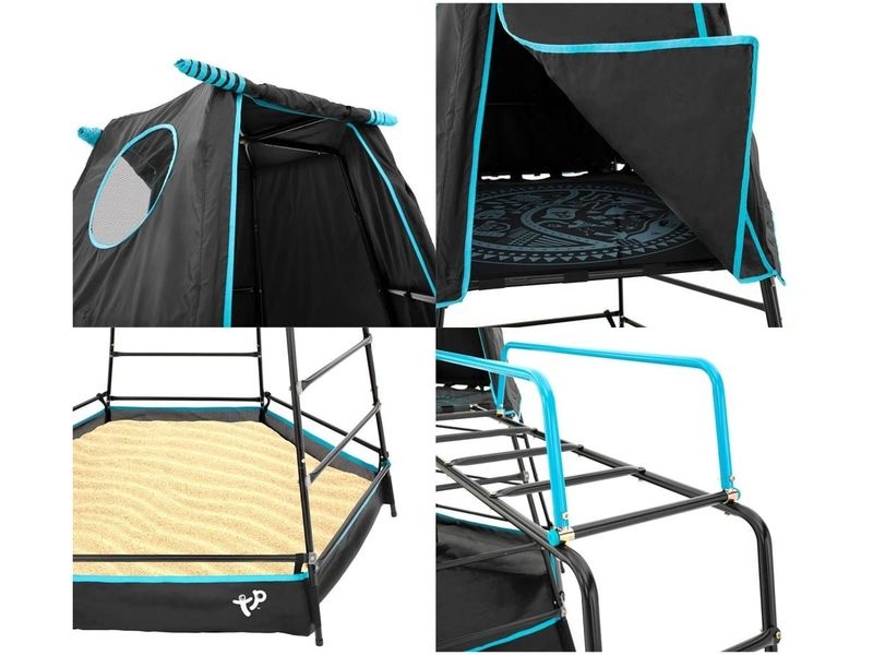 Obsahuje lezeckú stenu s opičou dráhou, ktorá je vybavená dvoma madlami pre bezpečné šplhanie. Miesto pod hernou vežou je možné jednoducho premeniť na pieskovisko alebo na miesto pre balóniky. Súčasťou ihriska je aj hrací stan vyrobený z robustného polyesteru, ktorý má potlačenú podlahu a dva vchody, ideálny pre kreatívnu hru a úkryt.