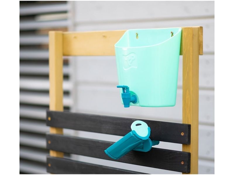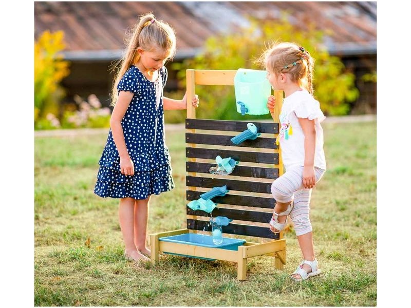 Stěna je vyrobena ze 100% FSC certifikovaného borovicového dřeva, které zajišťuje odolnou a bezpečnou konstrukci pro děti. Díky odnímatelnému sběrnému kontejneru a dalším promyšleným prvkům je údržba snadná a umožňuje opakované použití vody, což zaručuje dlouhodobou zábavu.