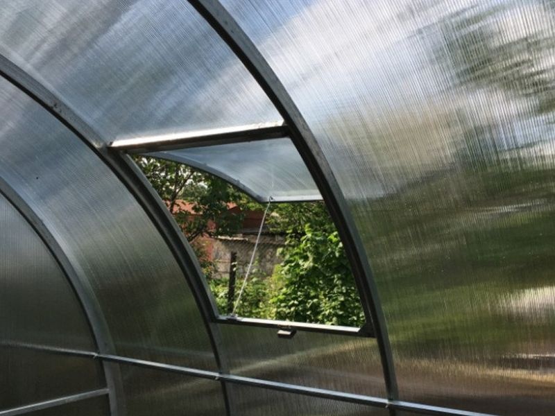 Originálne strešné vetracie okno pre záhradné skleníky Herbus (nie je možné kombinovať s inými modelmi). Rám okna je vyrobený rovnako ako celý skleník z hranatých rúrkových profilov.