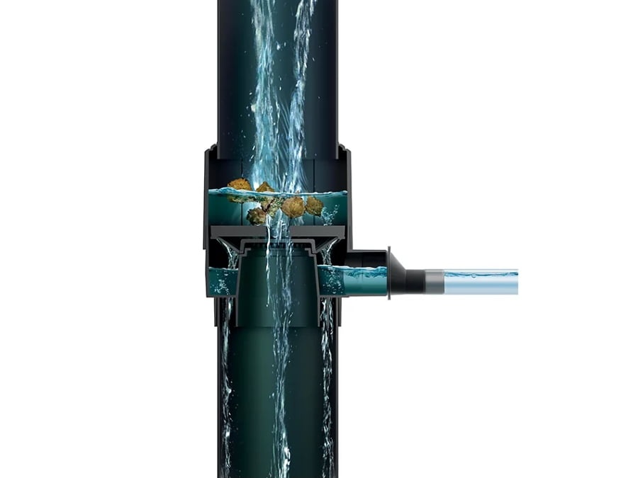Filter pre okapy sa inštaluje priamo na rúru odtoku. Je určený pre potrubie s priemerom 75 mm, 90 mm, 100 mm a 110 mm.