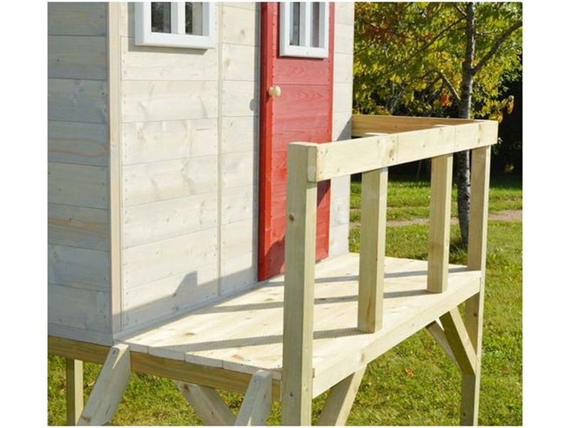 Domček na chôdach vyniká svojím prírodným vzhľadom, ktorý zaujme ako deti, tak dospelých. Vďaka dvom malým okienkam z plexiskla a verande s červenými vstupnými dverami je tento domček nielen funkčný, ale aj vizuálne pútavý.
