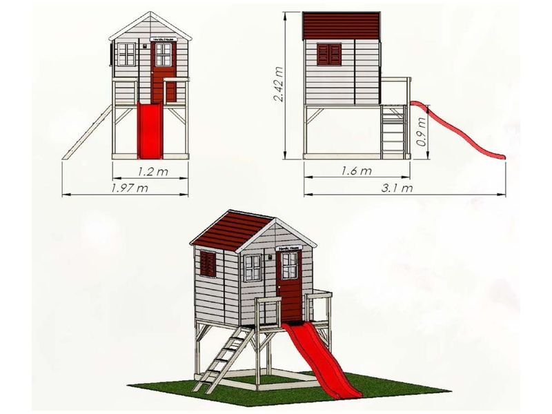 Domček na chôdach s rozmermi 310×350×242 cm je praktickým a zábavným doplnkom do vašej záhrady. Súčasťou domčeka je šmykľavka a pieskovisko, čo deťom poskytuje skvelé možnosti na hranie. Je ideálnym miestom pre dobrodružstvá a kreatívnu hru, ktorá vaše deti poteší a zabaví.