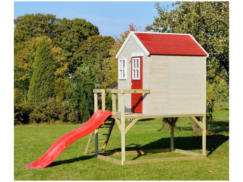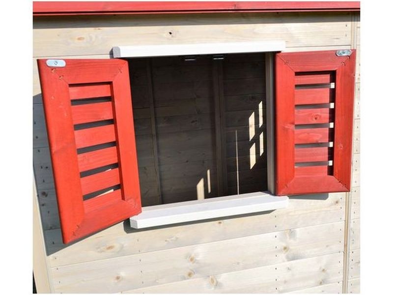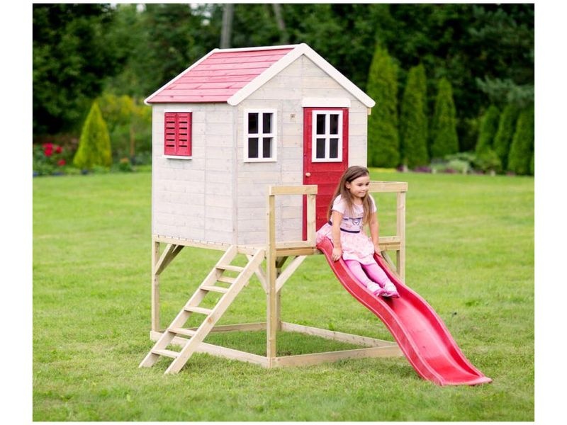 Domček je vybavený šmykľavkou (ku ktorej vedie rebrík) a krytým pieskoviskom, ktoré ponúka nekonečné možnosti na hry a zábavu. Pieskovisko je chránené domčekom nad ním, čo umožňuje jeho použitie aj pri miernom daždi. Vaše dieťa si môže v domčeku vytvoriť tajný úkryt alebo sa zapojiť do rôznych kreatívnych hier.