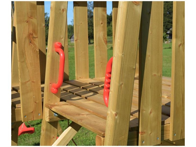 Nosná časť veže je vyrobená z odolného severského borovicového dreva, ktoré zaručuje dlhú životnosť a stabilitu pri používaní. Použité materiály spĺňajú prísne bezpečnostné normy, čo potvrdzuje certifikácia FSC-Mix 70 % a norma EN71. Nosnosť konštrukcie je 100 kg, pričom nosnosť hojdačky dosahuje 50 kg.