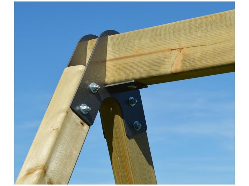 Herná veža je vyrobená z odolného severského borovicového dreva, ktoré zaručuje dlhú životnosť a bezpečnosť pre vaše deti. Všetky použité materiály spĺňajú prísne bezpečnostné normy, čo potvrdzuje certifikát FSC-Mix 70 % a EN71. Nosnosť veže je 100 kg. Nosnosť hojdačky je 50 kg.