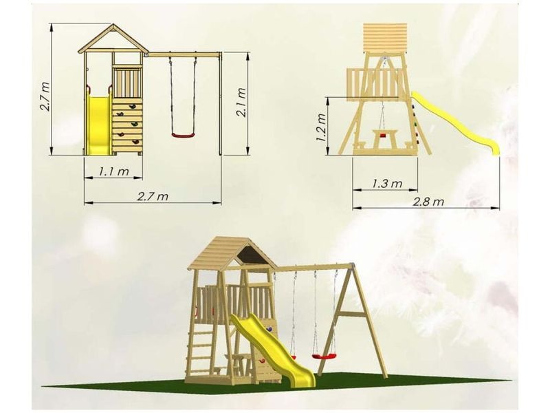 Herná veža s rozmermi 280×270×270 cm je praktickým a zábavným doplnkom do vašej záhrady. Súčasťou veže je šmykľavka s hojdačkou, lezeckou stenou a piknikovým stolom, čo deťom poskytuje skvelé možnosti na hranie. Je ideálnym miestom pre dobrodružstvá a kreatívnu hru, ktorá vaše deti poteší a zabaví.