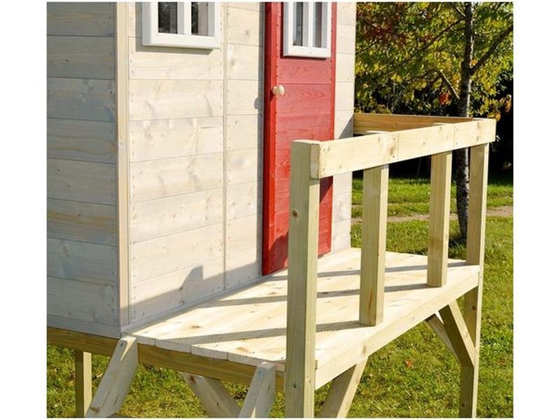 Domček je vyrobený z odolného severského borovicového dreva, ktoré zaručuje dlhú životnosť a bezpečnosť pre vaše deti. Všetky použité materiály spĺňajú prísne bezpečnostné normy, čo potvrdzuje certifikát FSC-Mix 70 % a EN71. Nosnosť domčeka je 50 kg.