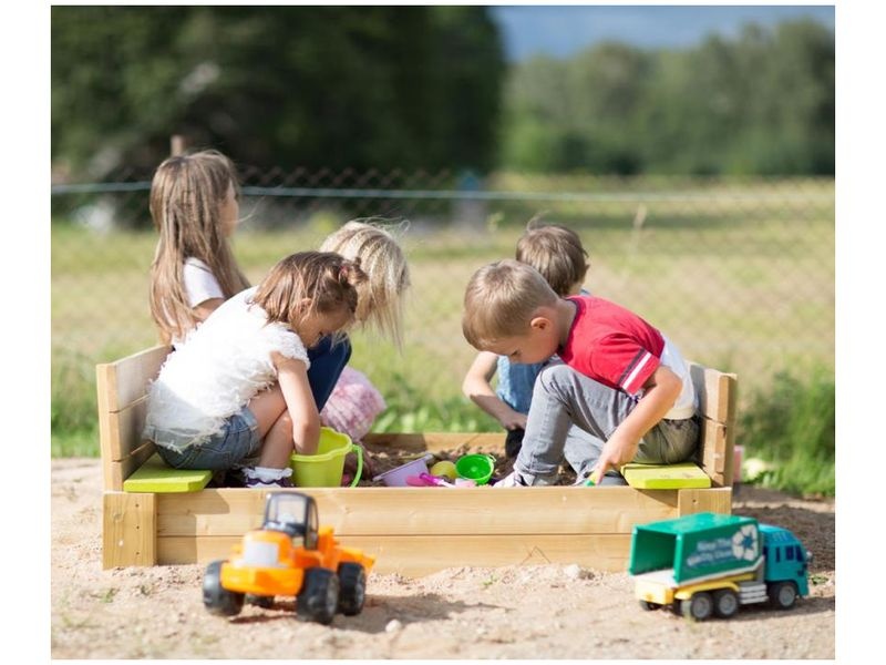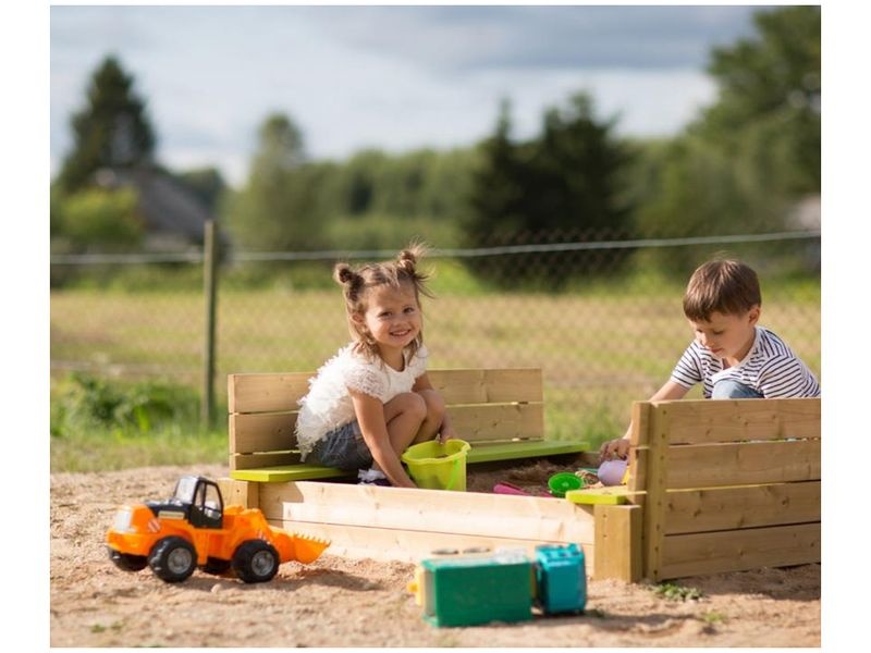 Pieskovisko je vyrobené z odolného severského borovicového dreva, ktoré zaručuje dlhú životnosť a bezpečnosť pre vaše deti. Všetky použité materiály spĺňajú prísne bezpečnostné normy, čo potvrdzuje certifikát FSC-Mix 70 % a EN71.