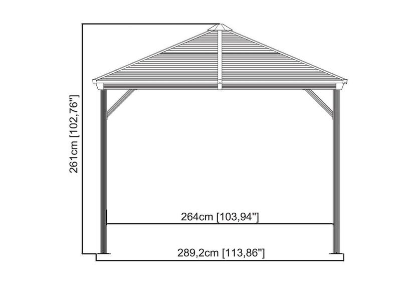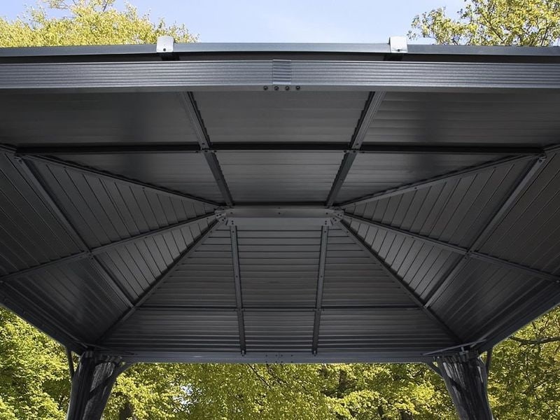 Strecha altánu je vyrobená z odolnej pozinkovanej ocele, ktorá je vždy krásne tvarovaná. Zaručuje obzvlášť vysokú stabilitu a ľahko odoláva poveternostným podmienkam, ako je dážď, sneh alebo slnko. Vďaka tomu je možné altán ponechať na svojom mieste počas celého roka.