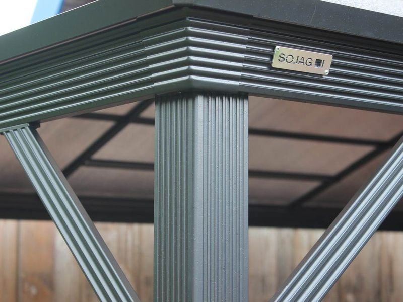 Záhradný hliníkový altán je vyrobený z tých najkvalitnejších materiálov, ktoré sú odolné voči korózii. Konštrukcia je z odolného práškovo lakovaného hliníka. Jednotlivé stĺpiky majú hrúbku 7,6 cm a sú spájané nerezovými oceľovými skrutkami, čím vytvárajú veľmi stabilnú konštrukciu.