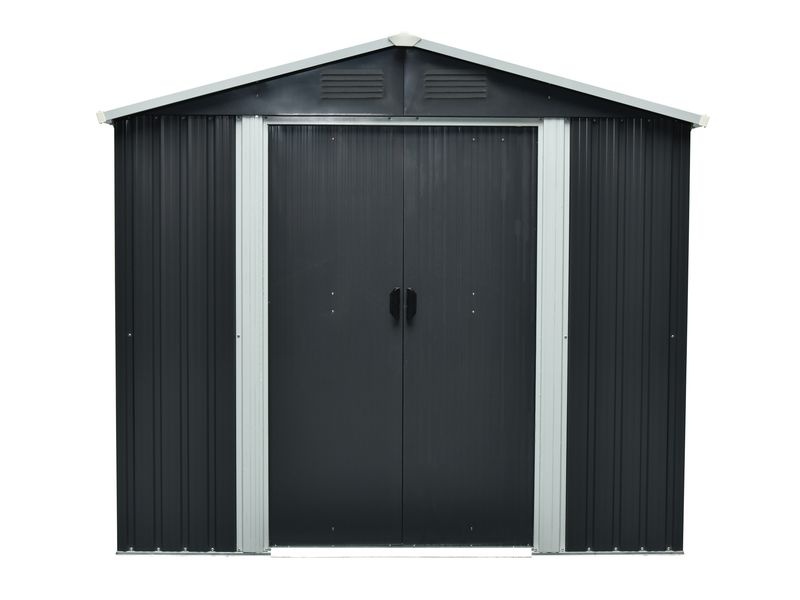 Kvalitný materiál s povrchovou úpravou – elektrolyticky pozinkovaný plech s žiarovo nanesenú farbou. Sedlová strecha, čelné posuvné dvere. Možnosť uzamknutia (zámok nie je obsahom dodávky).